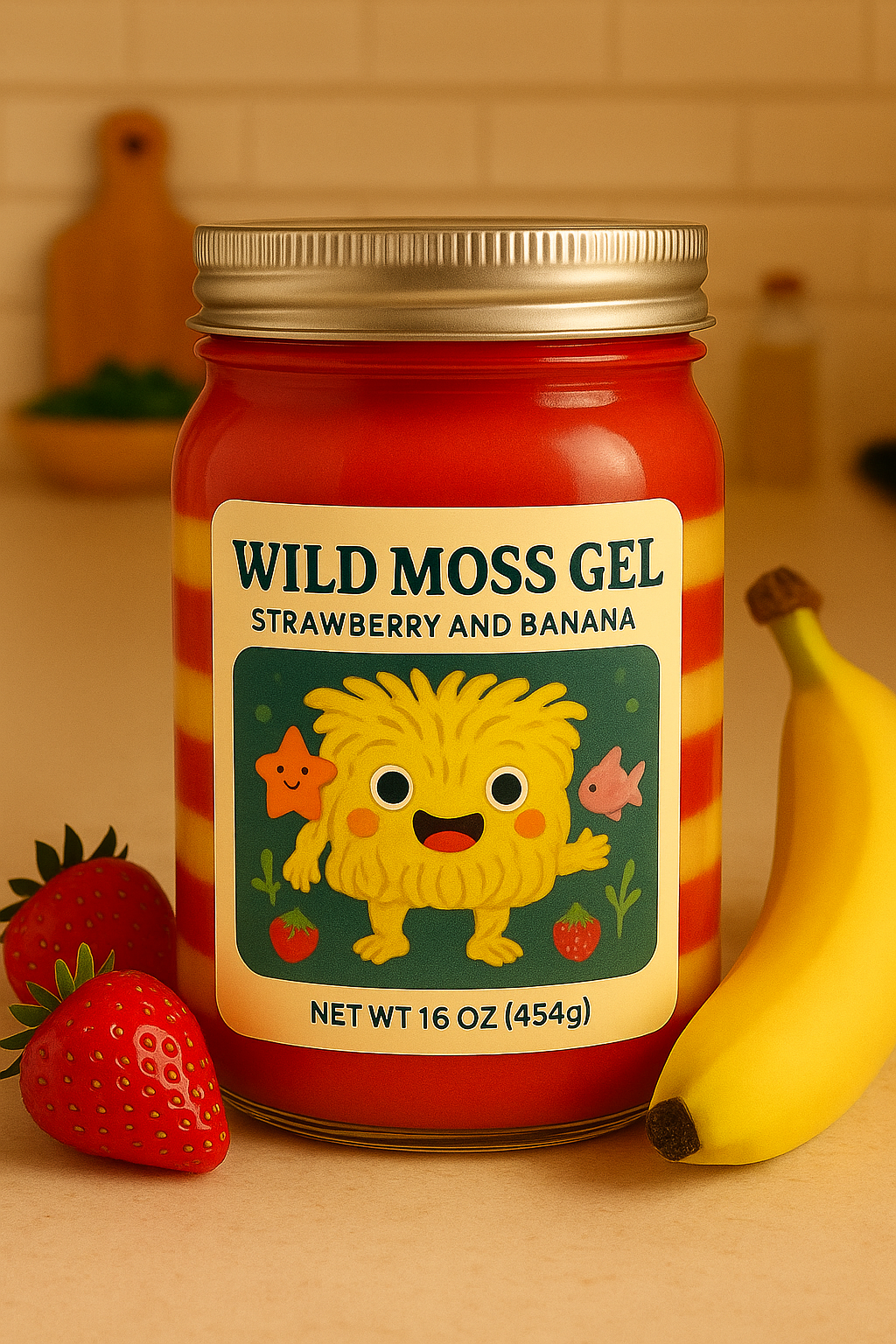 Sweetened Layered Naturally Flavored Strawberry Banana Sea Moss. Sweetened with Natural Monk Fruit Sweetener.