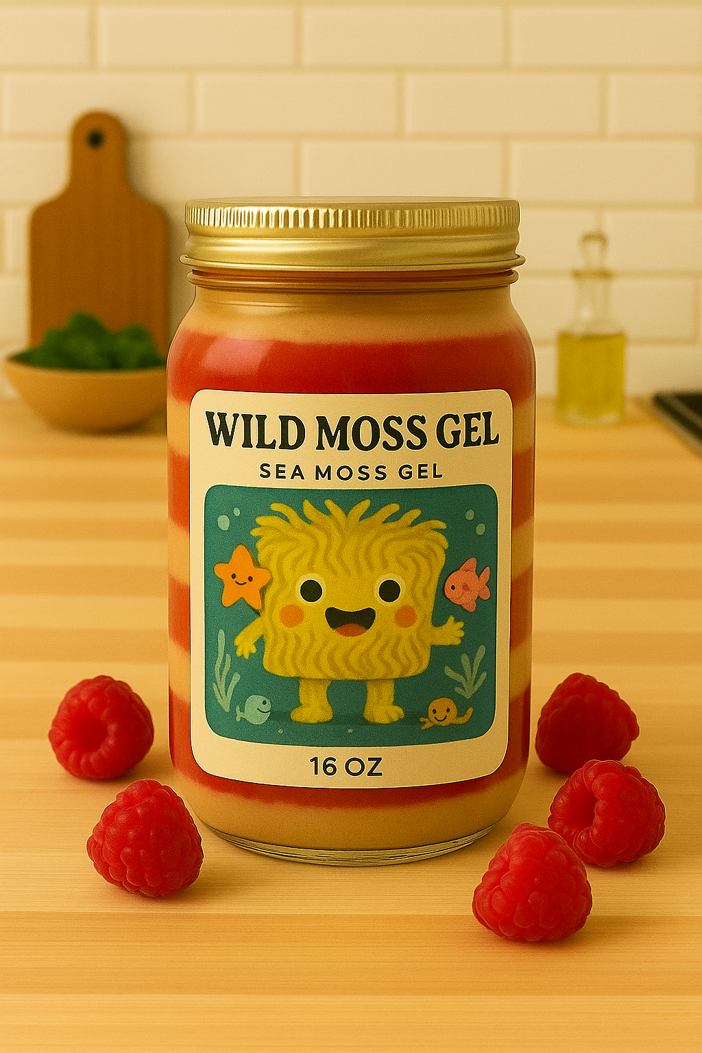 Sweetened Raspberry Fruit Layered Sea Moss Gel - Naturally Sweetened with Monk Fruit